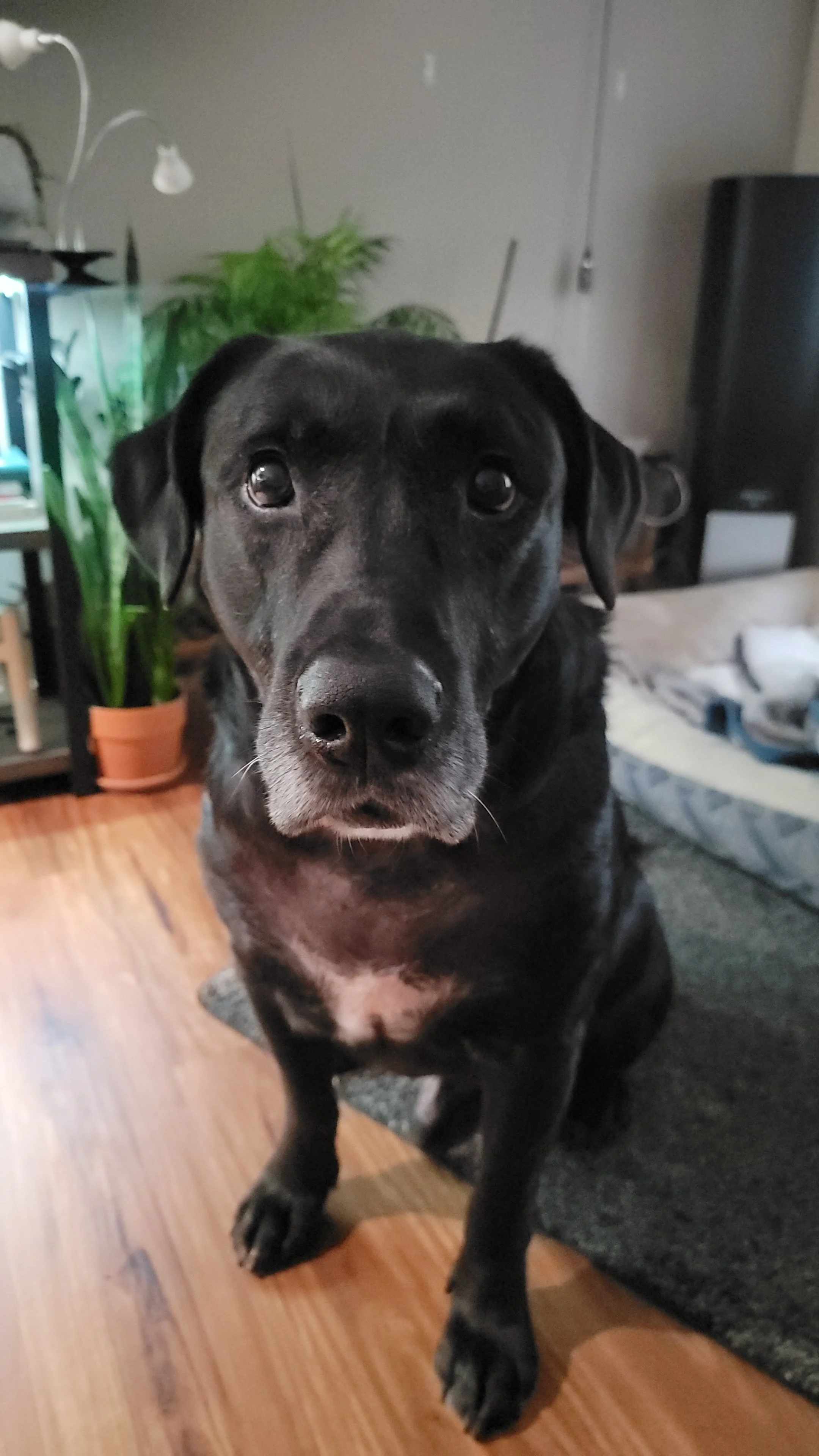 Tater (left) is our Black Lab who was rescued as a stray in our neighborhood in August of 2020. At the time we estimated him to be about 5 or 6 years old. He’ll always greet you with a toy and more than happy to go for a long walk or equally long nap. When we took him into our care he was suffering from deadly amounts of dermatitis and ear infections. With the help of a dog dermatologist and regular vet visits he couldn’t be happier! Tater’s time with us was fairly short and unfortunately he passed away in June 2025. He will be missed by many but loved by all. We love you Tater boy!