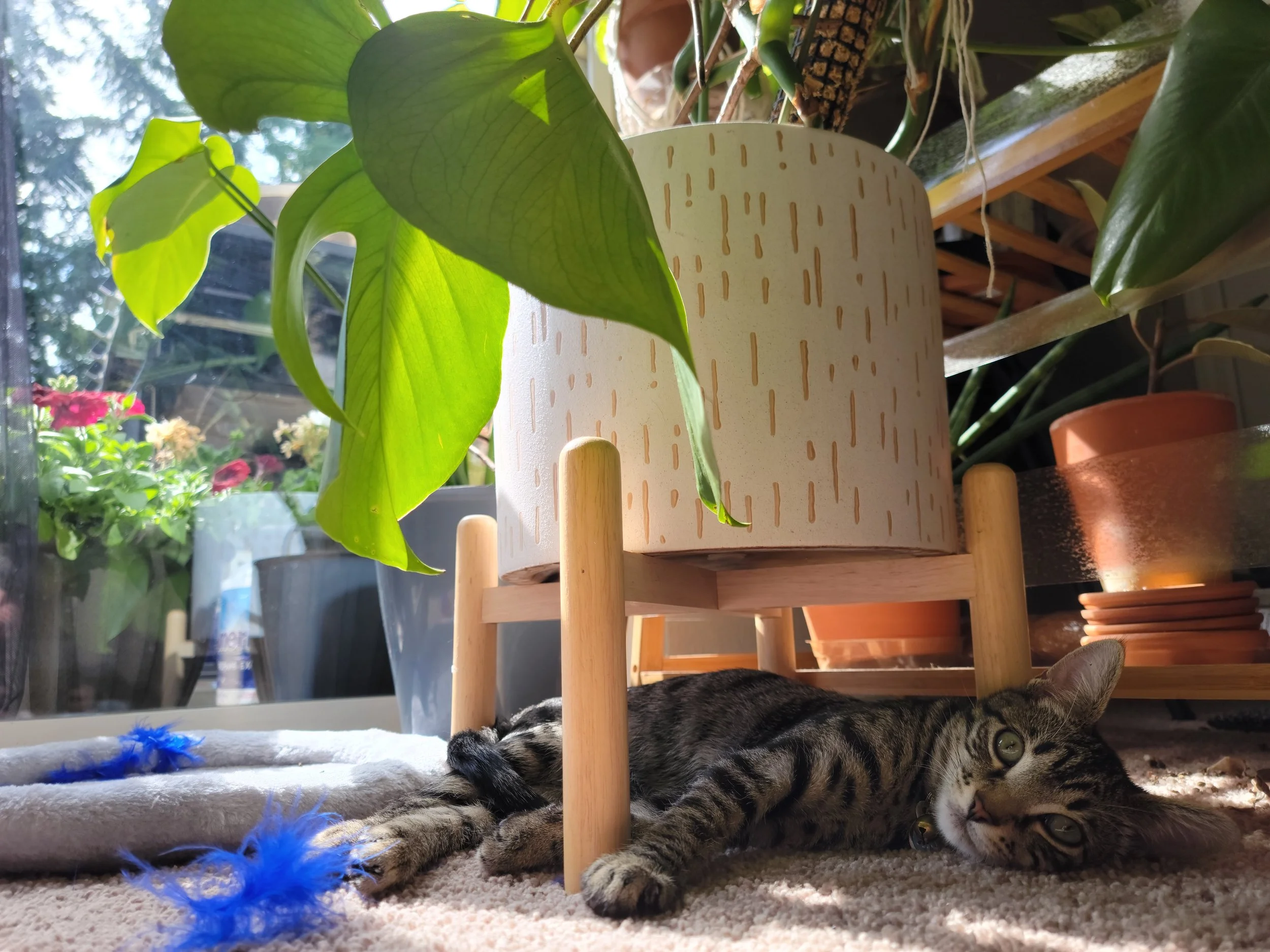 Ham (boy, middle) and Benny (girl, right) are the feline friends of our family. Only one year apart they couldn’t be better friends and have a ton of fun chasing each other around the house and getting into shenanigans. We all know Benny probably started it though…